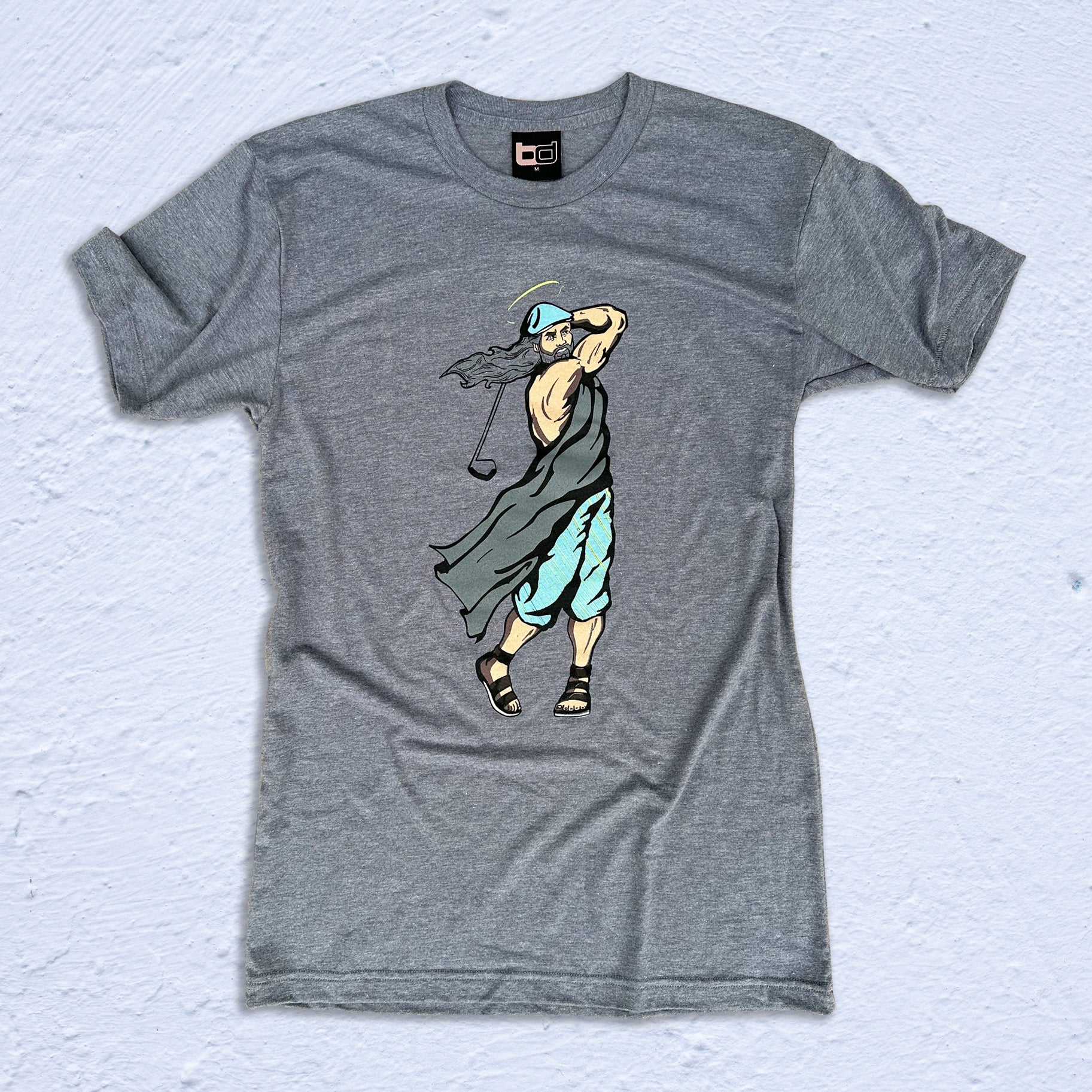 Some say his swing is a little unorthodox and his club selection a bit too casual, but make no mistake, Fore Jesus is a serious ball striker. If you have been struggling to take your golf game to the next level, maybe it's time to get serious and elevate your game with a Fore Jesus tshirt. This shirt is guaranteed to shave 18 strokes off your game.
